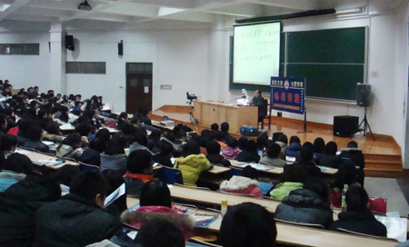 陈文灯教授在给同学们讲课辅导 12月11日晚,文昌院112教室座无虚席。中央财经大学数学部主任、享受国务院特殊津贴的著名考研数学辅导专家陈文灯教授,给beat365学生作了一场考研中的数学问题讲座。 陈教授的助理首先向同学们介绍了我国目前的考研形势,指导同学如何树立正确的考研目标。其幽默诙谐的语言,深入浅出的讲解使同学们受益匪浅。 陈教授在讲座中强调指出 “掌控数学,研究生非你莫属!”,接着就近几年考研数学出题模式作了深入地分析。并例举了一些典型案例,结合自己的经历为大家讲述了考研的心得和经验,使同学们对考研的数学复习有了更深刻地认识。 最后,同学们纷纷上台与陈教授交流,陈教授也就大家提出的疑问耐心地作了解答。 本次由经管系分团委和学生会主办的讲座,让同学们对考研数学有了全方位的了解,同时指导大家如何设定合适的考研目标,增强了同学们考研的信心和决心。