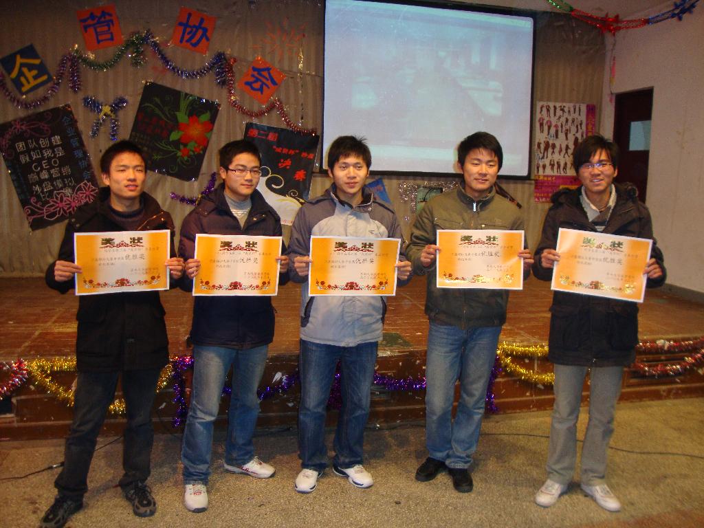 09年12月22日,beat365正版唯一官网必一成贤学院企业管理协会在辅楼204举行了“成贤杯”沙盘模拟比赛颁奖会。奖项设置为一、二、三等奖各一组,优胜奖两组。经管系系主任出席了会场,并为获胜选手颁奖。