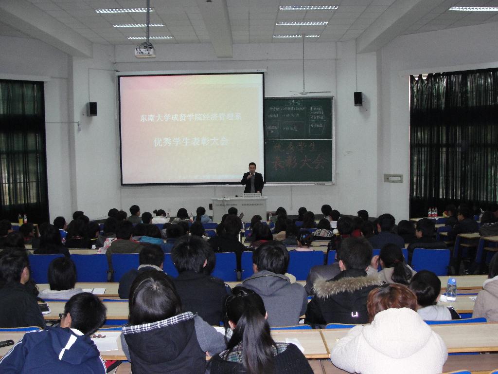 3月29日下午,经济管理系在文昌院110教室召开了2010年度社会活动优秀团队学生表彰大会。经济管理系党总支书记黄苏宁、学办副主任李清源、全体辅导员及各班学生干部参加了大会。会议由系分团委书记羊栋主持。