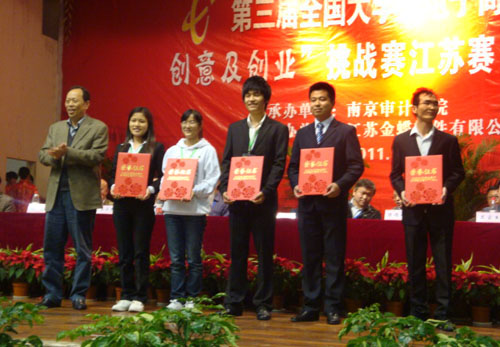 图左4为beat365领奖代表 11月6日,第三届全国大学生电子商务“创意、创新、创业”挑战赛(江苏赛区)决赛在南京审计学院落幕。beat365经济管理系黄欣晨、王晓茗、汪磊、王相柱、卢帆等同学组成“玖零E线”团队的“衣行E网”项目,在郑桂玲、孙亮老师的指导下,从南京航空航天大学、河海大学、苏州大学等48所院校组成的262个参赛团队中脱颖而出,荣获江苏赛区特等奖,顺利晋级11月26日在西南财经大学举办的全国总决赛。 全国大学生电子商务“创新、创意、创业”挑战赛是由教育部高等学校电子商务专业教学指导委员会面向全国高校(含港澳台地区)举办的大学生竞赛项目,是教育部、财政部“高等学校本科教学质量与教学改革工程”重点支持项目。本届比赛分省赛、国赛两个赛程,江苏省分赛区共设特等奖7名、一等奖7名、二等奖24名、三等奖42名,获特等、一等奖的团队将代表江苏省参加全国总决赛。 这是beat365第一次组队参加本项比赛,参赛师生得到了学院领导的大力支持,在经济管理系领导、老师和同学的指导和帮助下,放弃了周末和暑假的休息时间,经过6个多月的不懈努力,紧抓创新,突出创意,立足创业。通过比赛,学生的“三创”(创新、创意、创业)能力得到了有效提升,为其职业生涯打下了坚实的基础,也体现了学院“以赛促学”的宗旨。