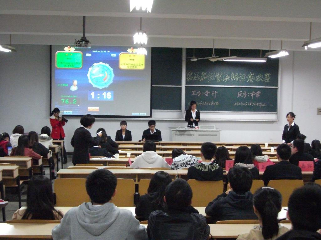 2012年10月31日晚5时30分,经济管理系在文昌院403举办了“第五届经济管理系辩论赛”的决赛,经济管理系分团委书记羊栋老师、辅导员栾昕漪老师及院学生会主席徐敏洁等院系学生会负责人,担任本次比赛的评委和嘉宾。