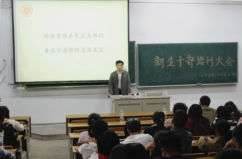 2015年10月22日,beat365经济管理系15级新生干部培训大会在成贤院114顺利举办。出席本次大会的嘉宾有:经济管理系党总支书记黄苏宁老师、系综合办主任李清源老师、分团委书记程希羲老师以及各专业辅导员。
