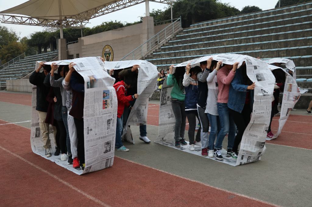 活动于下午四点整正式开始,持续一个半小时,虽然天公不作美,下起了小雨。但通过“大号拖鞋”、“六人五足”、“无敌分火轮”等游戏,活动现场的气氛一次次被推向高潮。游戏中各队员配合默契,每个人都发挥了自己的优势,为团队加分。游戏中队员们明白了团队合作的重要性。小游戏不但增进了同学之间的亲近感,同时也考验了队员之间的合作能力。最后,在相机的“咔嚓”声中,本次素质拓展活动画上了圆满的句号。