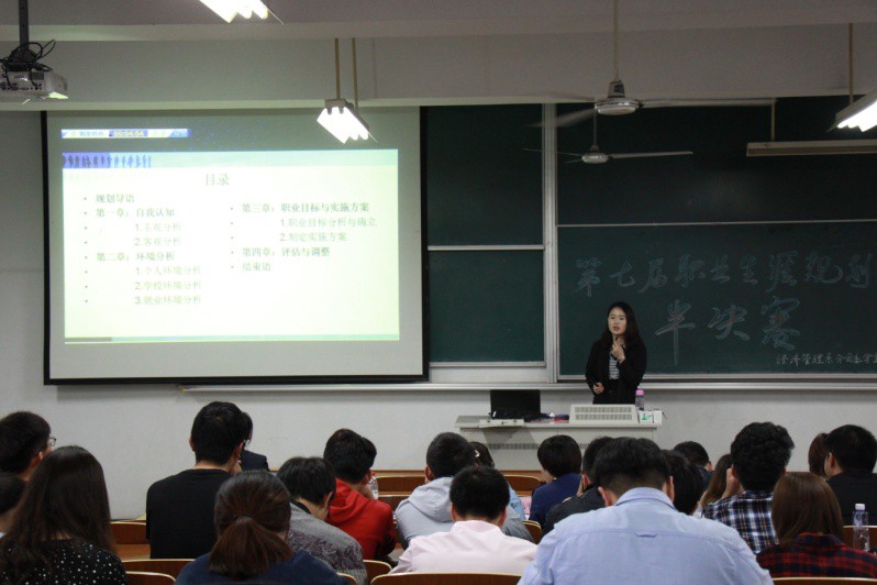 这次比赛共有15名选手参加,分别来自全院各个系。本次比赛分为两个环节,第一环节由各名选手通过个人PPT讲解的方式向大家展示了他们对职业生涯规划的理解和认识,并结合自身实际和所学专业对自己未来职业做出了详细明确的规划设计。第二环节是由评委老师对参赛选手提问。选手们从容应对,都给出了精彩的回答。最后,由主持人宣布结束,此次活动圆满完成。