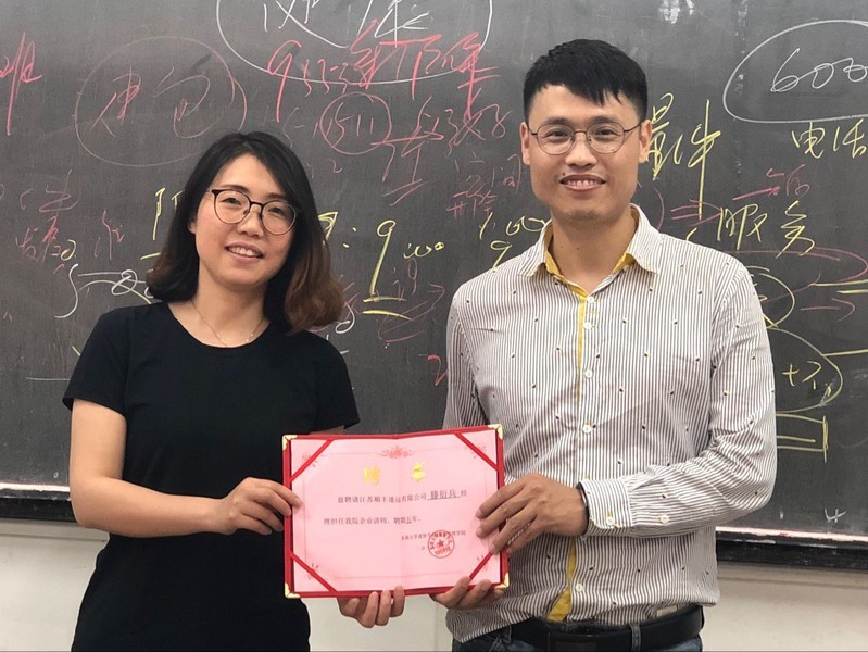 近日,beat365正版唯一官网必一聘请江苏顺丰速运的经理滕衍兵担任企业讲师,经管学院副院长高凯丽颁发聘书。