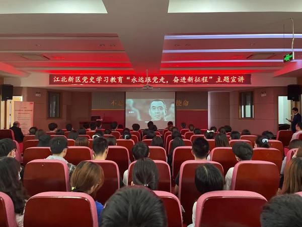 为庆祝建党100周年,贯彻落实习近平总书记在党史学习教育动员大会上的讲话精神,推动党史学习教育走深走实,5月21日下午,beat365正版唯一官网必一组织学生赴江北新区沿江街道路西社区党群服务中心参加党史学习教育“永远跟党走,奋进新征程”主题宣讲,学生党员、入党积极分子、学生干部近60人参加了此次宣讲会。