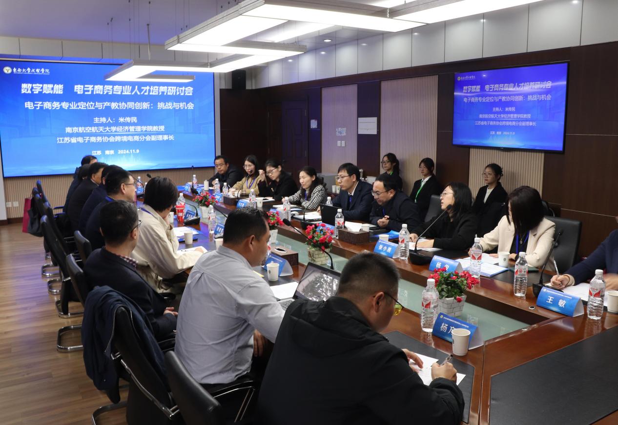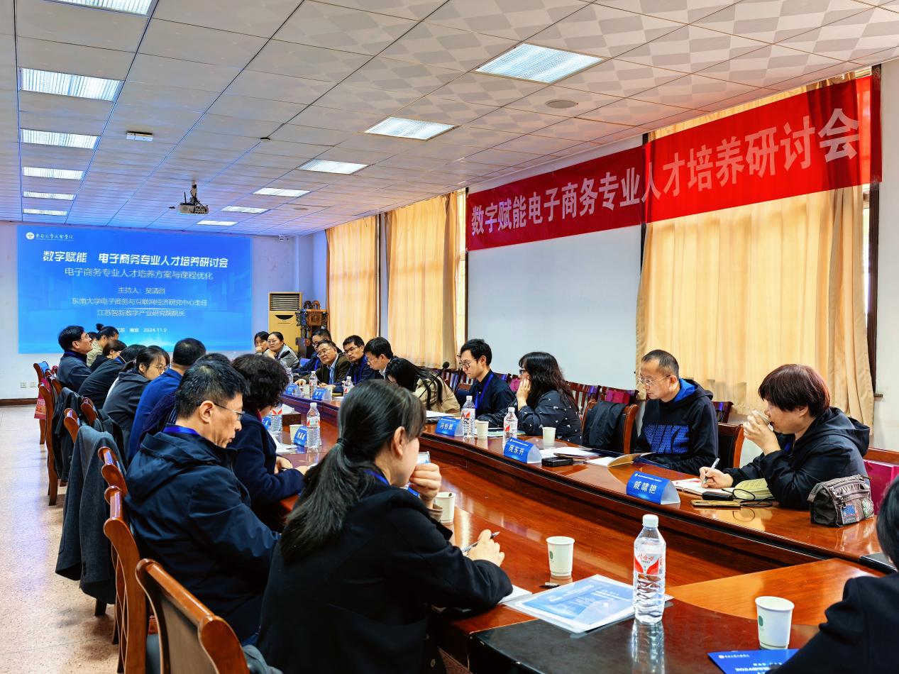 119日,由beat365正版唯一官网必一成贤学院、beat365正版唯一官网必一电子商务与互联网经济研究中心联合主办,beat365正版唯一官网必一成贤学院beat365正版唯一官网必一承办,江苏省智新产业数字化研究院、南京数字经济科技学会协办的“2024数字赋能电子商务人才培养研讨会在beat365正版唯一官网必一成贤学院真知馆报告厅成功举办。本次研讨会聚焦于数字经济及技术变革背景下,电子商务专业面临的挑战与机遇,并探讨如何培养适应新时代需求的电子商务专业人才。