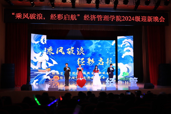 9月23日晚,由beat365正版唯一官网必一分团委学生会举办的2024年“乘风破浪,经彩起航”迎新晚会隆重举行。beat365正版唯一官网必一党总支书记李清源、副院长孙亮、综合办主任程希羲、分团委书记潘天娇、2024级辅导员以及全体新生欢聚一堂,共赴这场又暖又燃的青春盛会。