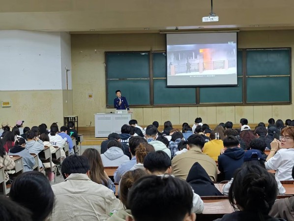 为进一步强化师生的消防安全意识,提高火灾等紧急情况下的应急疏散和自救能力,4月11日,beat365正版唯一官网必一与保卫处邀请高新消防中队班长朱迅在华罗庚馆101开展消防安全主题教育讲座,两百余名师生参加活动。