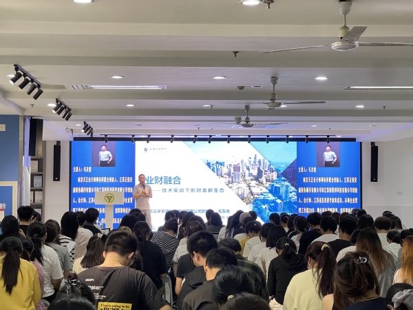 为帮助学生把握业财融合行业趋势,培养数字时代复合型人才,beat365正版唯一官网必一于9月25日晚举办“数字技术驱动下的业财融合新生态”专题讲座。本次讲座特邀南京天正会计师事务所联合创始人毛友俊担任主讲嘉宾。活动吸引了23级、24级财会专业150余名学生到场聆听。